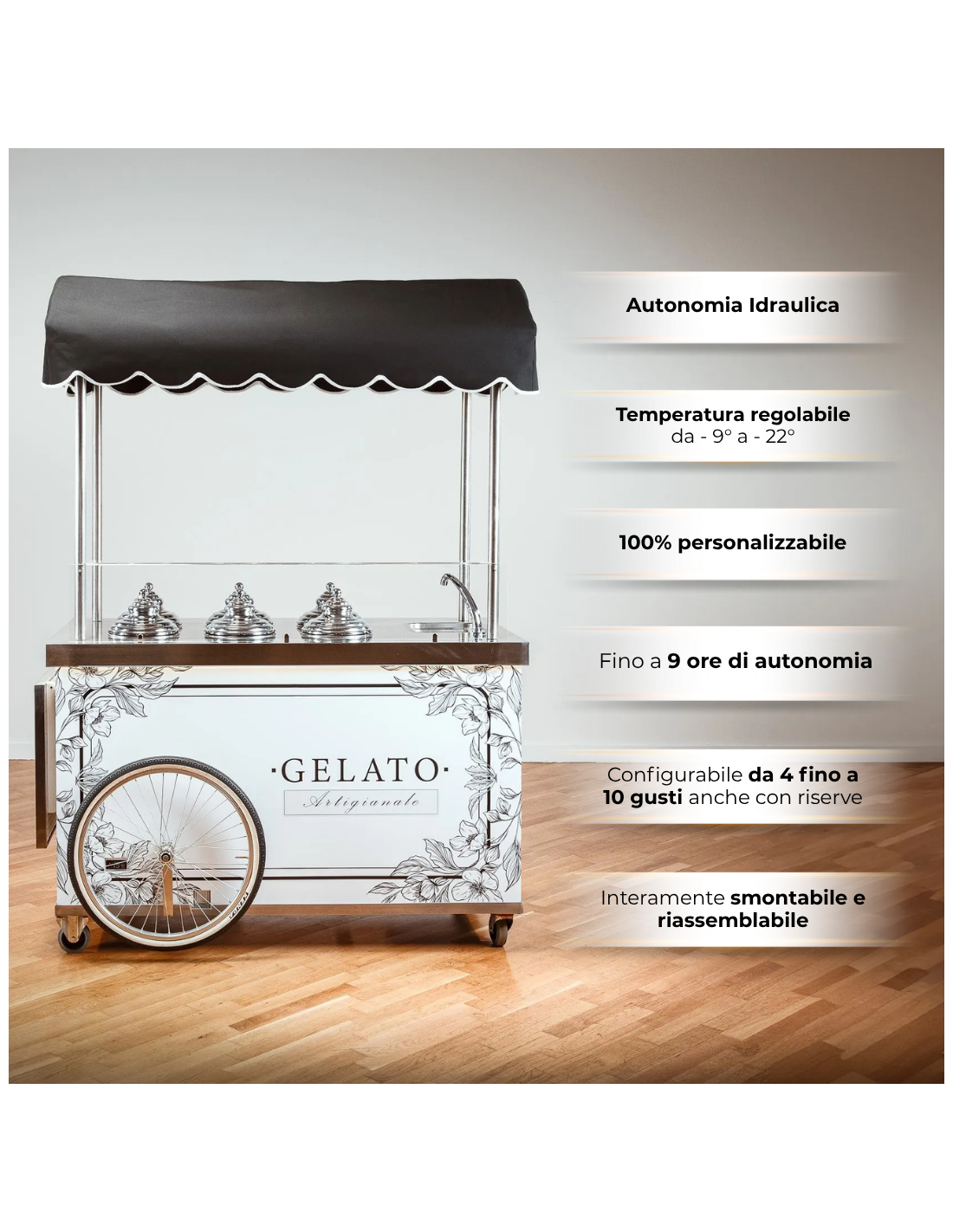 Termostato digital regulable de -9° a -22° (ideal para usar el carrito tanto para helados como para granizados sicilianos).