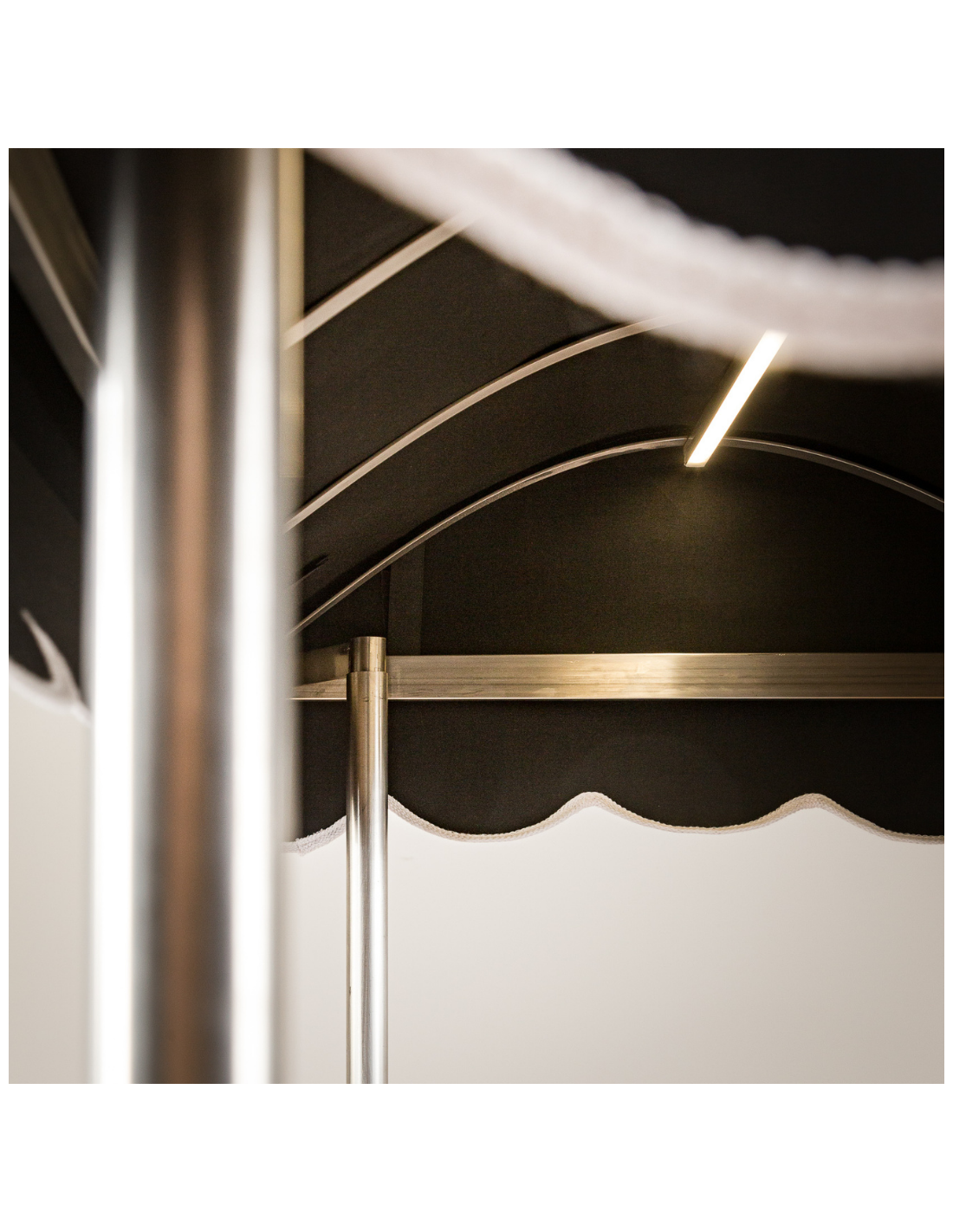 4 postes de acero inoxidable con estructura de cubierta de acero inoxidable, completamente desmontables de forma rápida y sencilla, lo que facilita el traslado y transporte del carrito para eventos al aire libre. Base reforzada de acero inoxidable con 4 ruedas giratorias, dos de ellas autoblocantes.
